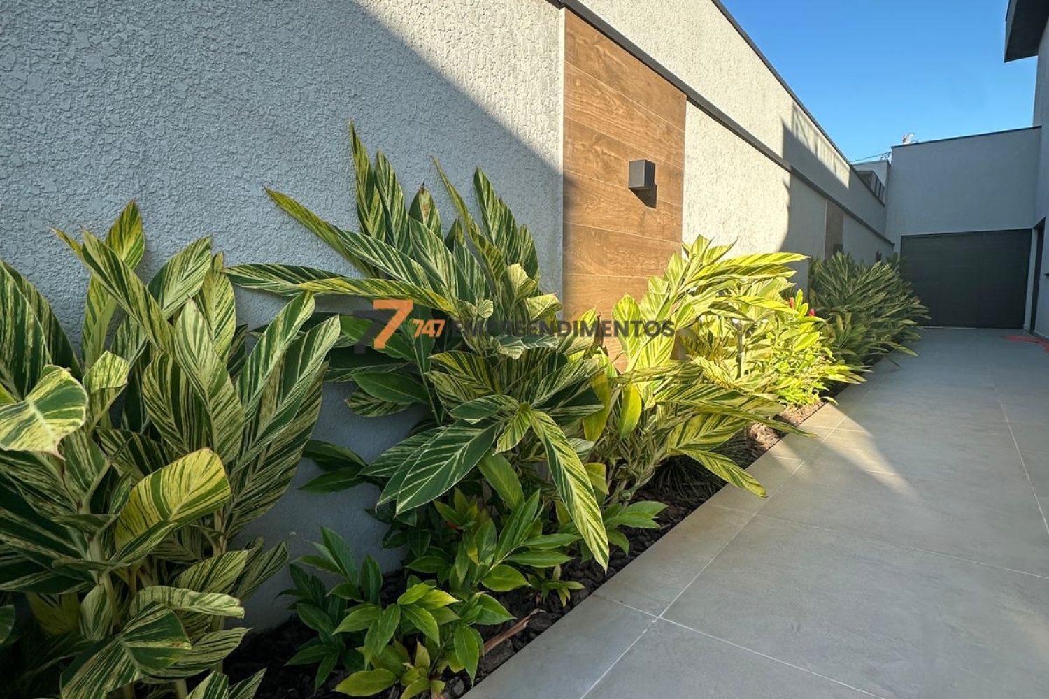 O projeto de jardinagem valoriza o perímetro da residência e integra o imóvel à natureza exuberante do condomínio.