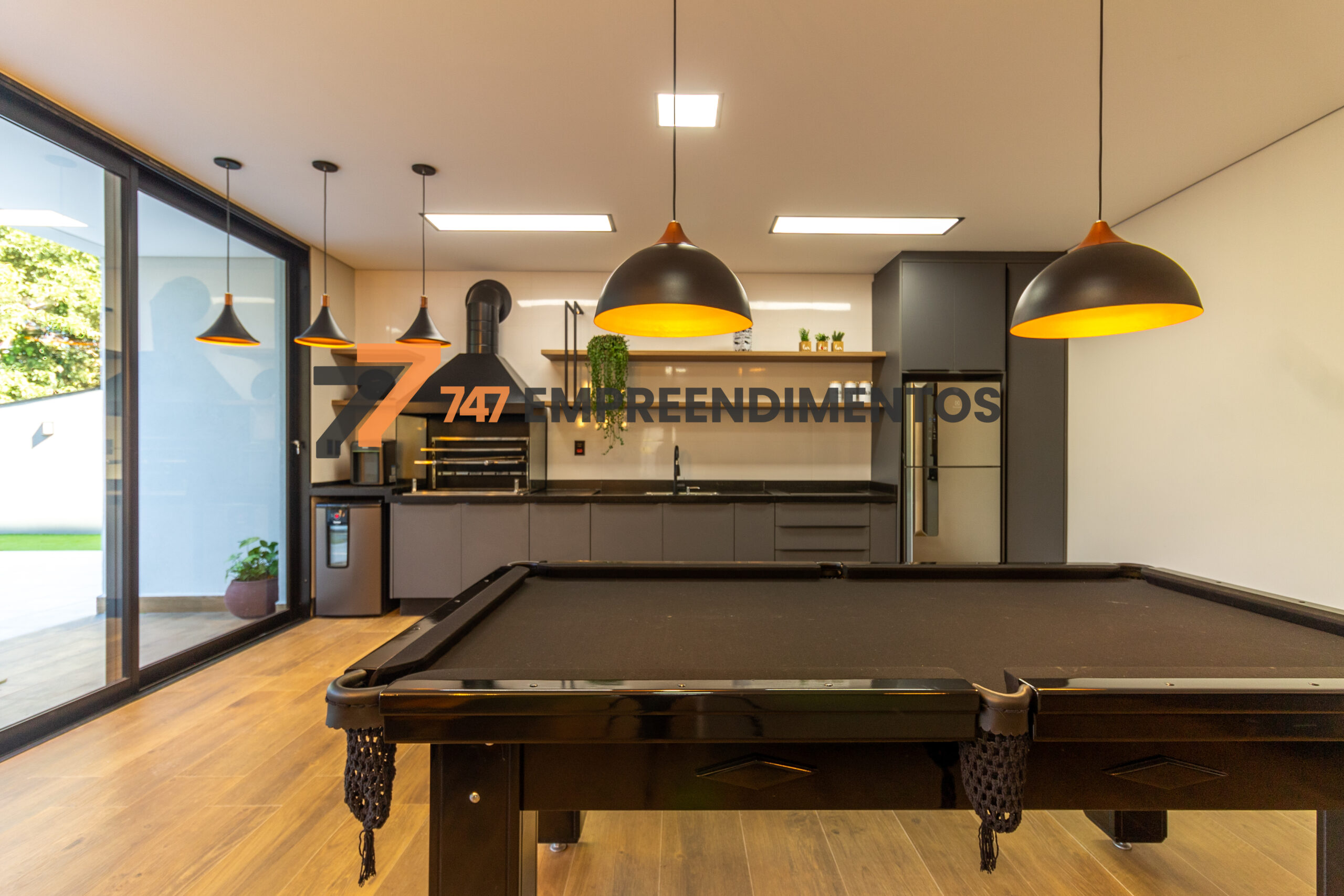A área gourmet é um espetáculo à parte — equipada com churrasqueira, eletrodomésticos embutidos e móveis planejados.