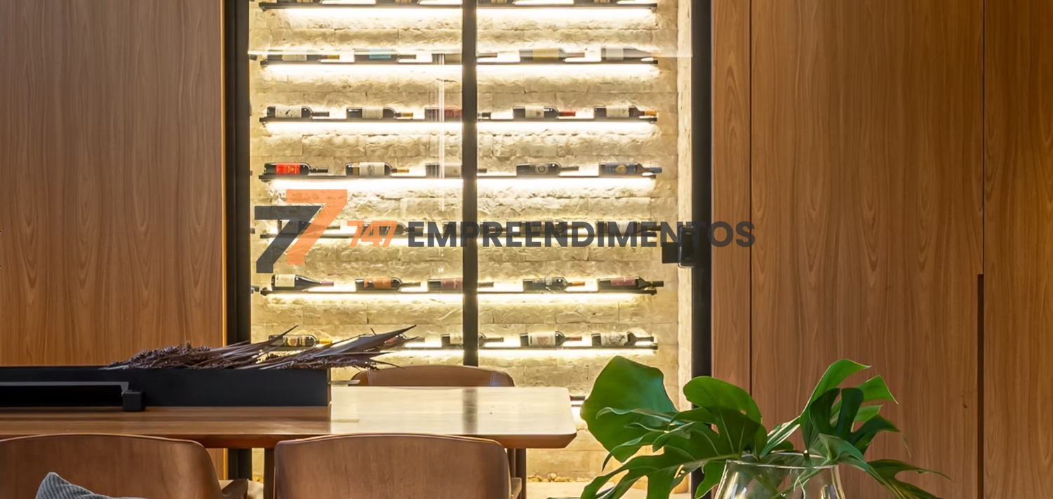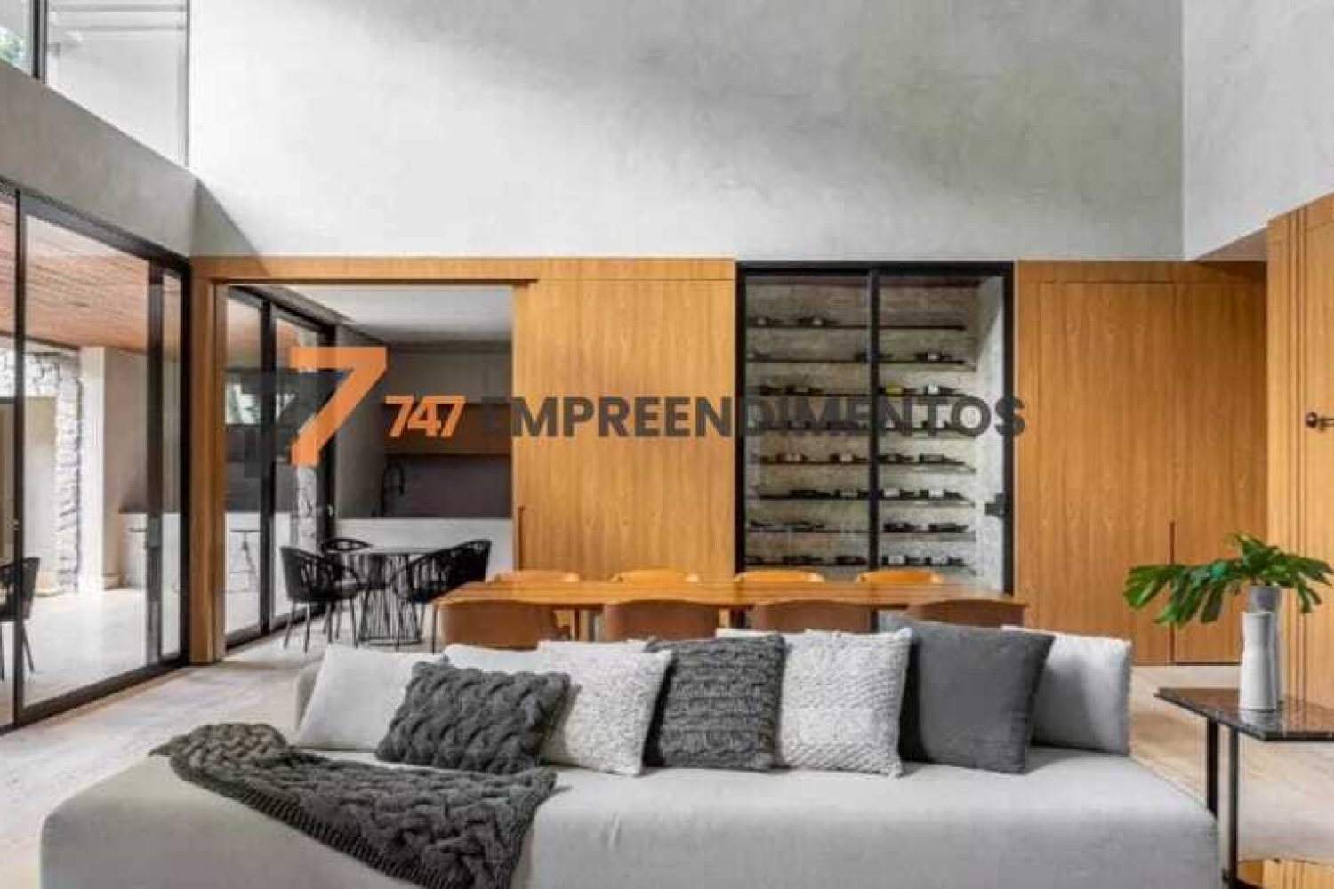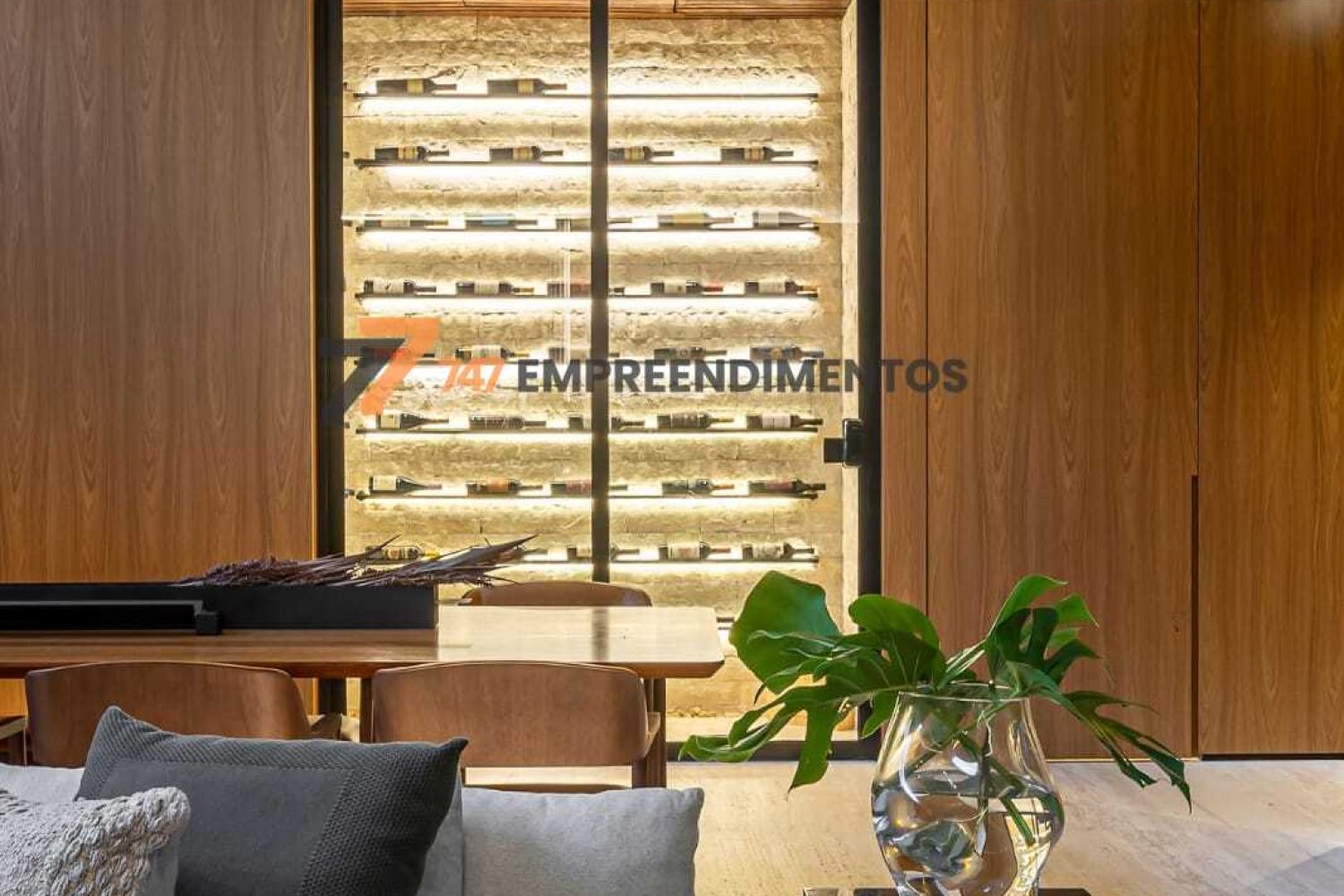 A sala principal, imponente e acolhedora, conecta-se à adega climatizada, ao lavabo decorado e à cozinha totalmente equipada, além de uma área gourmet perfeita para receber.