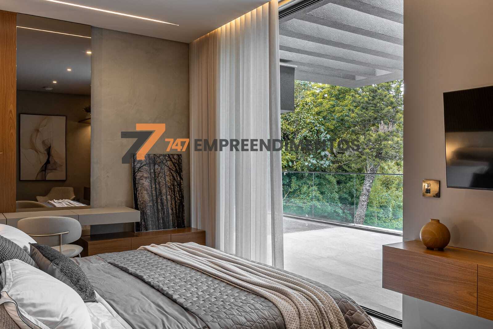 A suíte master é um espetáculo à parte: closet generoso, banho com piso aquecido e varanda panorâmica com vista para a natureza — um verdadeiro convite ao descanso.